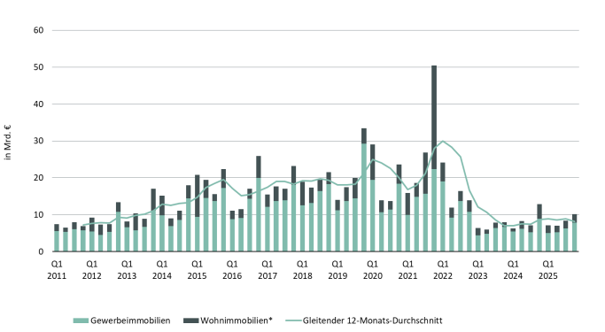 „Wir erwarten eine weitere graduelle Erholung des Immobilieninvestmentmarktes. Angesichts einer gut gefüllten Dealpipeline inklusive diverser sehr großer Landmark-Transaktionen, die bei erfolgreicher Umsetzung zu einer gewissen Initialzündung für den hiesigen Markt werden könnten, ist für 2026 ein Transaktionsvolumen von 35 bis 40 Milliarden Euro zu erwarten“, prognostiziert Lemli. „Darüber hinaus könnten Immobilien aufgrund weiter steigender Unsicherheiten bei Investitionsalternativen wie Aktien und Anleihen als Save Haven wieder stärker an Bedeutung gewinnen.“