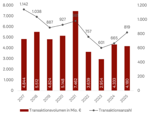 Transaktionsvolumen und -anzahl Wohninvestmentmarkt 2017 – 2025