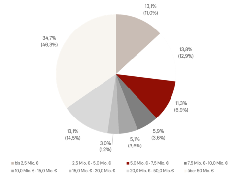 Getragen wird die Entwicklung von einer breiten Streuung über kleine und mittlere Ticketgrößen. Der überwiegende Teil der Transaktionen entfällt auf Volumina bis 7,5 Millionen Euro, während größere Einzelabschlüsse seltener bleiben. Der Markt wächst damit nicht über einzelne Ausreißer, sondern über funktionierende Einzeltransaktionen mit realistischen Preisen.