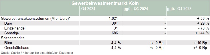 Gewerbeinvestmentmarkt Köln Q4-2024