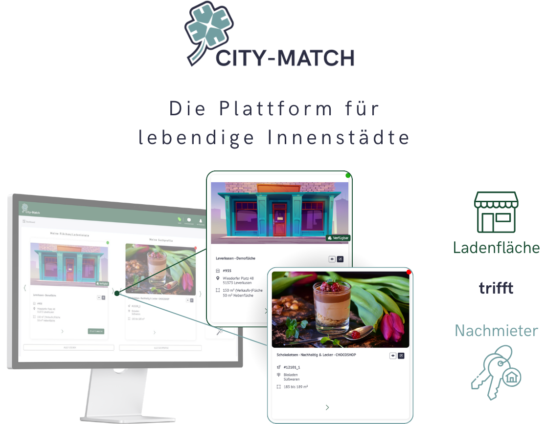 Die Leerstandslotsen (LLASM Technology GmbH) entwickeln digitale Lösungen für das Ansiedlungs- und Flächenmanagement in Innenstädten. Mit der Plattform City-Match vernetzt das Unternehmen Kommunen, Immobilienwirtschaft und expansionssuchende Unternehmen, um leerstehende oder leerfallende Gewerbeflächen schneller mit passenden Nutzungskonzepten zu besetzen.